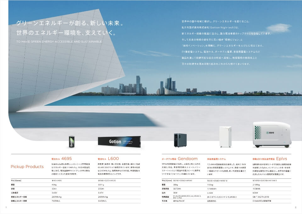 電池セルを製造販売する中国企業の日本法人、国軒高科日本株式会社様の商品のパンフレットの制作を行いました。